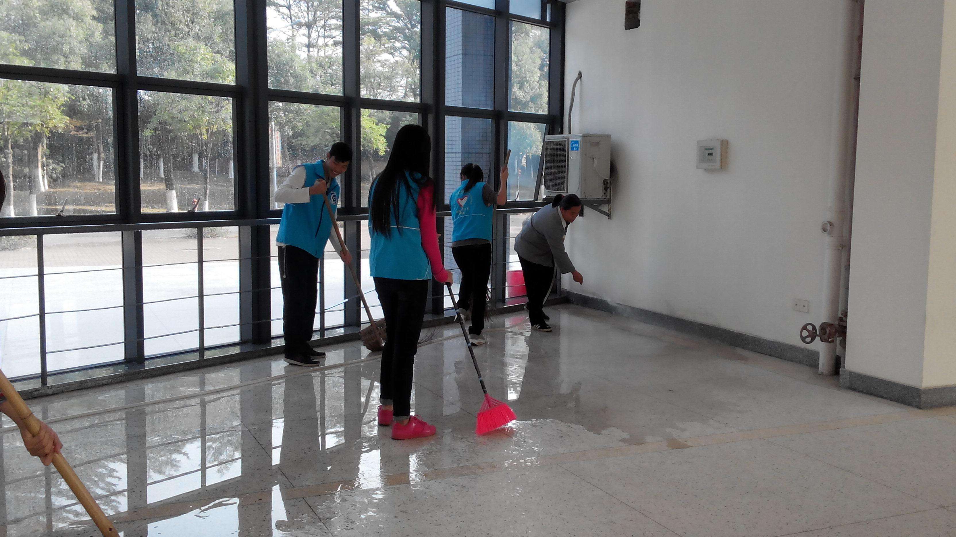 (7)、拖擦地面:潔凈、干爽不留水跡。擦拭臺(tái)面、面盆、水龍頭、玻璃鏡。